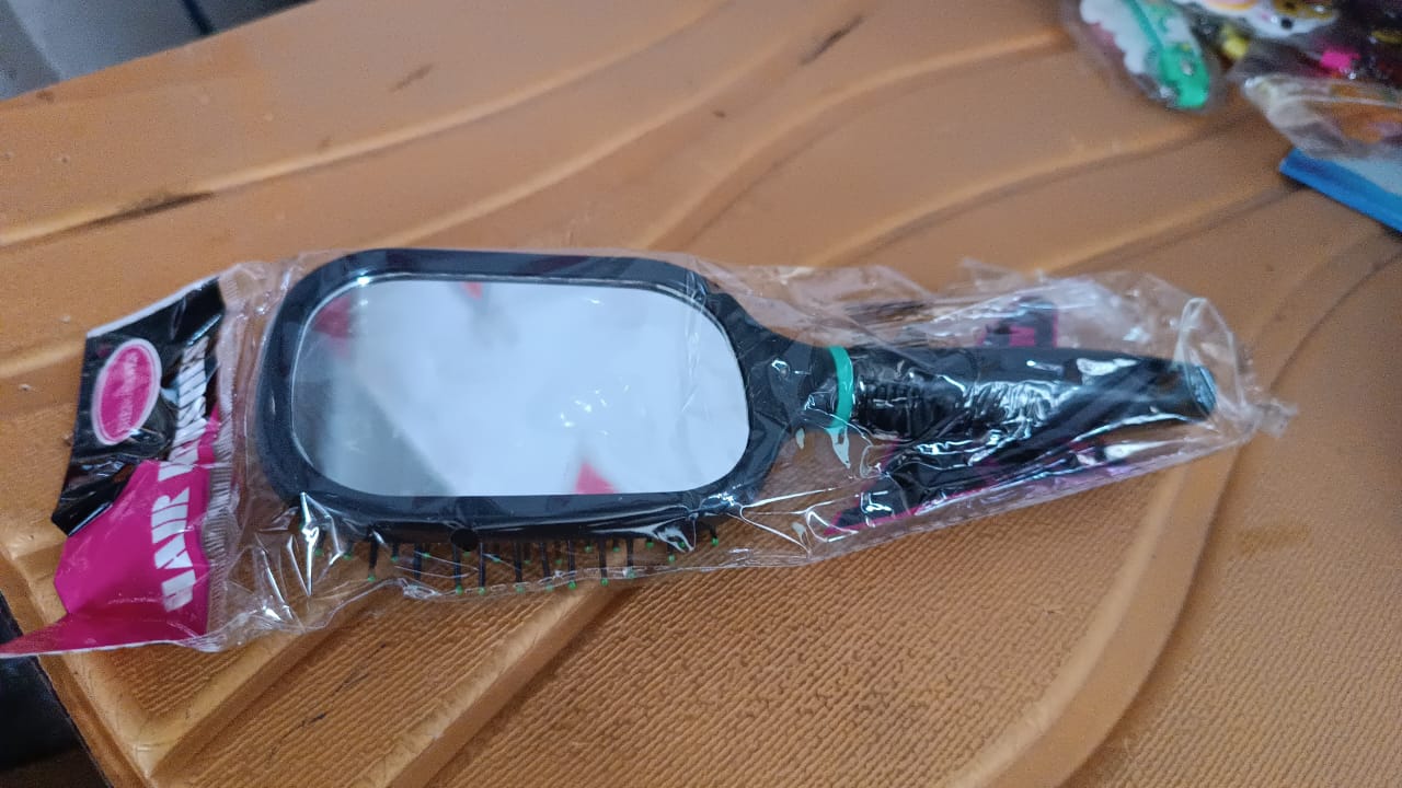 This innovative brush features a high-quality detangling comb on one side, and a built-in rectangular mirror on the other, making it ideal for quick hair touch-ups anytime, anywhere. Whether you're getting ready at home or freshening up during travel, this tool keeps you looking your best with ease.