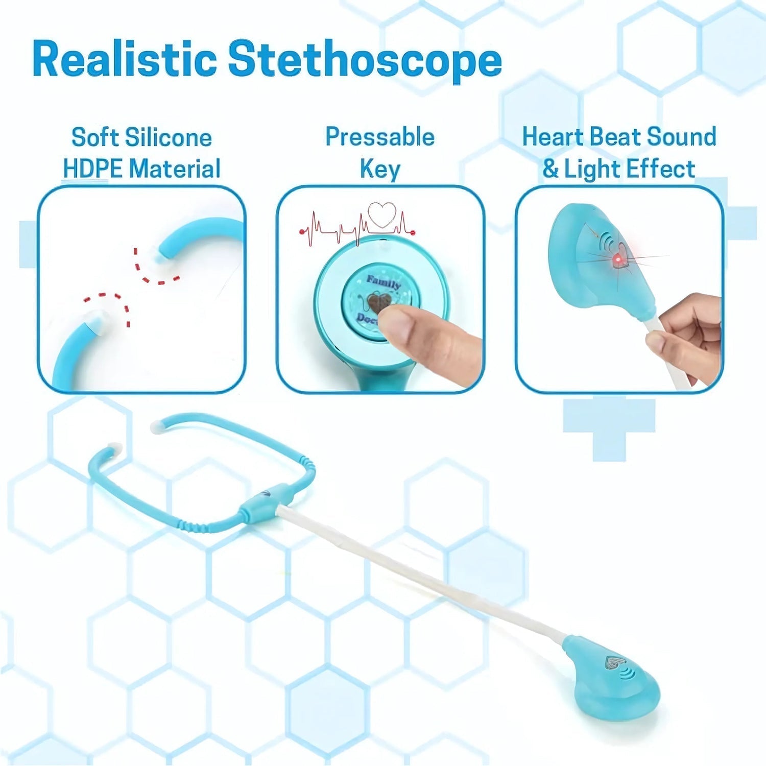 Crafted from safe, durable plastic with rounded edges, this kit helps children develop social and communication skills while engaging in fun and educational play. Whether performing a check-up on their toys or pretending to be a real doctor, kids can enjoy hours of screen-free interactive entertainment. The toy also aids in reducing anxiety about doctor visits by familiarizing kids with common medical instruments through role play.