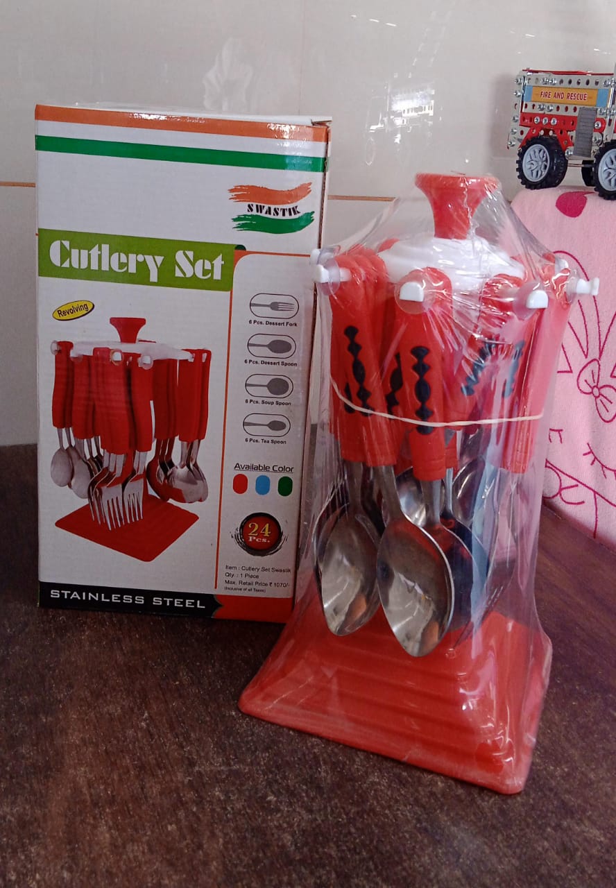 Classic Cutlery Set for Dining Table Stainless Steel 24-Piece Set, 6 Tea Spoon, 6 Dessert Spoon, 6 Dessert Fork, 6 Soup Soon, With Stand (1 Set)