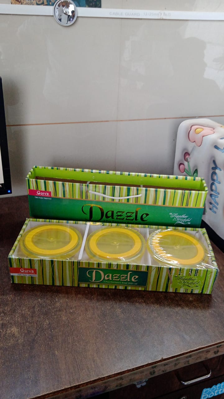 Dazzle Glass Bowl Set Mixing / Storage Bowls with Lids Food Storage Container Set with Lids - Microwave & Freezer Safe Multipurpose Kitchen Bowls Multicolour (3 Pcs Set)